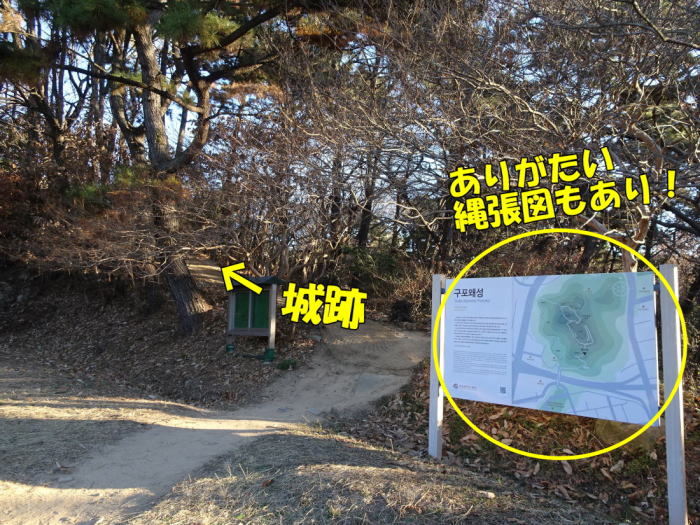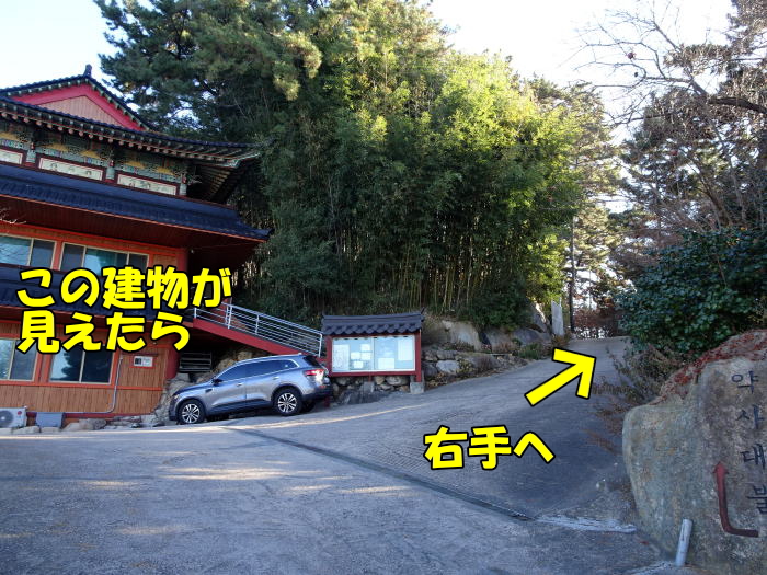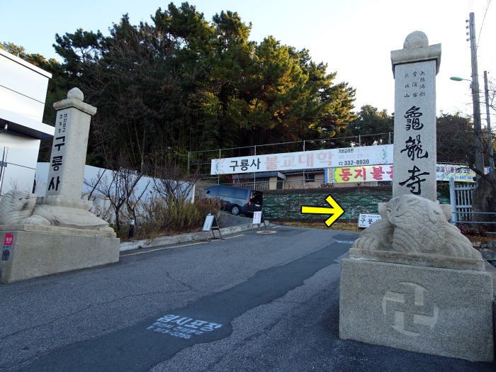 右に曲がると九龍寺という寺院があります。この九龍寺の裏山が亀浦城(亀浦倭城)です。入口を入りそのまま登っていきましょう。